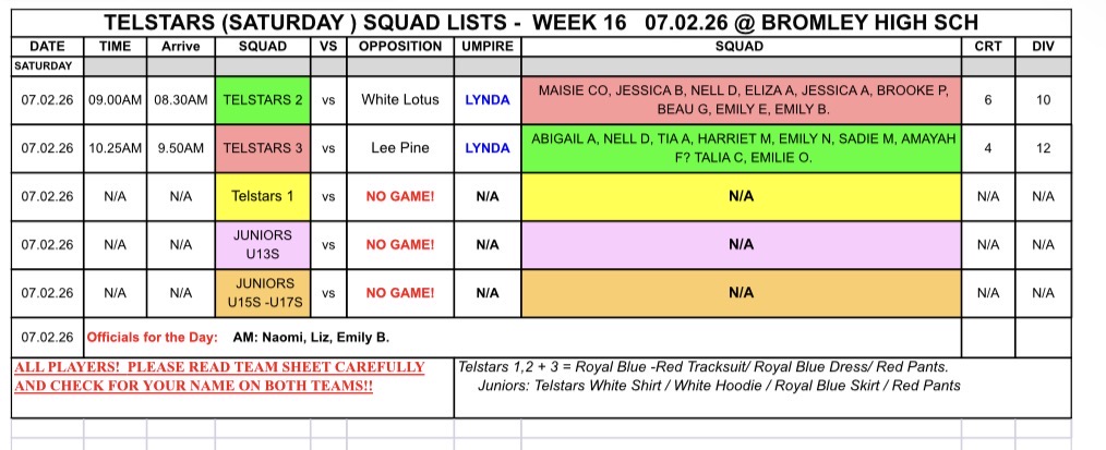 Weekly Team Schedule